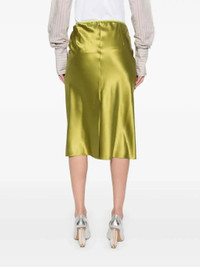 olive green elasticated waistband rear slit dart detailing straight hem Size & Fit Model Measurements: Height: 1.78 m Bust/Chest: 85.0 cm Hips: 92.0 cm Waist: 59.0 cm Model wears size 38 Fabric and Care Designer Style ID: 2510108041032 Designer Colour: 607 GREEN Composition: Elastane 6%, Silk 94% Washing instructions: Dry Clean Only Made in Poland