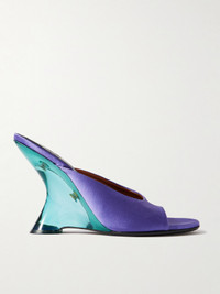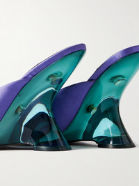 Dries Van Noten's sandals are both artful and futuristic. They're made from lustrous satin with low-cut, curved vamps and angular clear blue resin heels that offer 100mm of lift. Show them off with cropped hems.