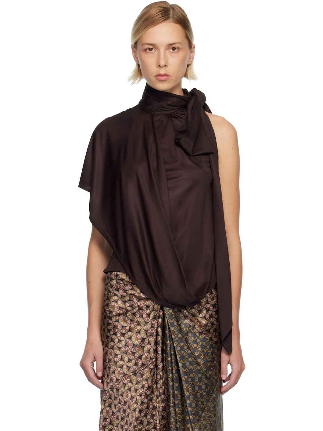 Viscose jersey top. · Asymmetrical construction · Integrated self-tie scarf at mock neck · Draping at front · Concealed zip closure at back Supplier color: Burgundy 100% viscose. Made in Portugal 252358F111004