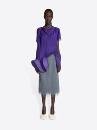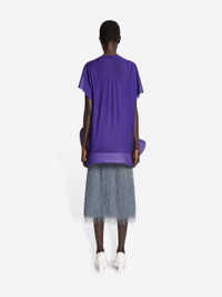 Regular fit short-sleeved top in silk voile, with sculpted asymmetrical hem and pleated border. DETAILS - 94% Silk, 6% Elastane. - Sculpted asymmetrical hem with pleated border. - Regular fit. Double-layered body. Semi sheer short sleeves. Slip-on. - Ref: 252-010708-2033 SIZE AND FIT Model is 178 cm / 70 inches and wears size 36.