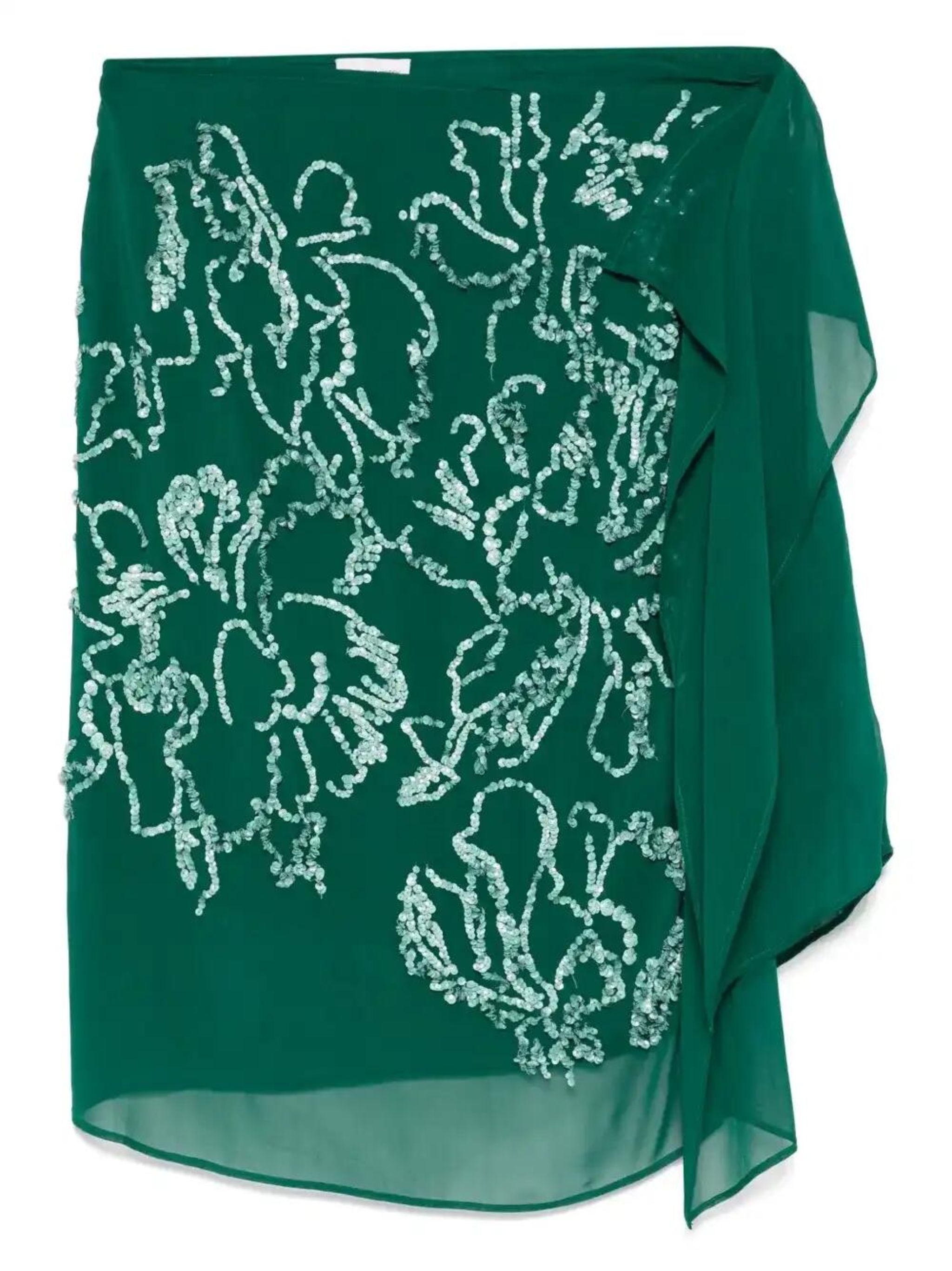 emerald green drawstring fastening waist side slit draped detailing Size & Fit Model Measurements: Height: 1.75 m Bust/Chest: 86.0 cm Hips: 93.0 cm Waist: 66.0 cm Model wears size 36 Fabric and Care Designer Style ID: 2510108431487 Designer Colour: 604 GREEN Composition: Viscose 100% Washing instructions: Dry Clean Only Made in India