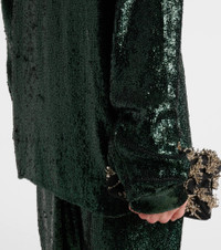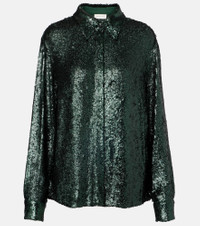 Dries Van Noten's pieces are always maximalist and one-of-a-kind. This shirt is embellished with allover sequins and features a straight, slightly oversized silhouette. Product Details - Material: 100% viscose - Care instructions: dry clean - Made in India - Designer color name: Bottle - Item color: green - Closure: buttoned front - Item number: P01056599 Size & Fit - Fits large to size - we recommend trying one size smaller - Dropped shoulders - Oversized - Non-stretchy fabric - Falls below the hip - The model seen in the picture is 178cm-5'10" and wearing a size FR 34