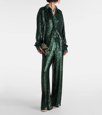 Dries Van Noten's pieces are always maximalist and one-of-a-kind. This pants are embellished with allover sequins and feature a straight silhouette with an elasticated waistband. Product Details - Material: 100% viscose - Care instructions: dry clean - Made in India - Designer color name: Bottle - Item color: green - Elasticated waistband - Item number: P01056605 Size & Fit - True to size - Sizing adapted to taller women - Elasticated waist - Adjustable at the waist - Non-stretchy fabric - Straight leg - The model seen in the picture is 178cm-5'10" and wearing a size FR 36
