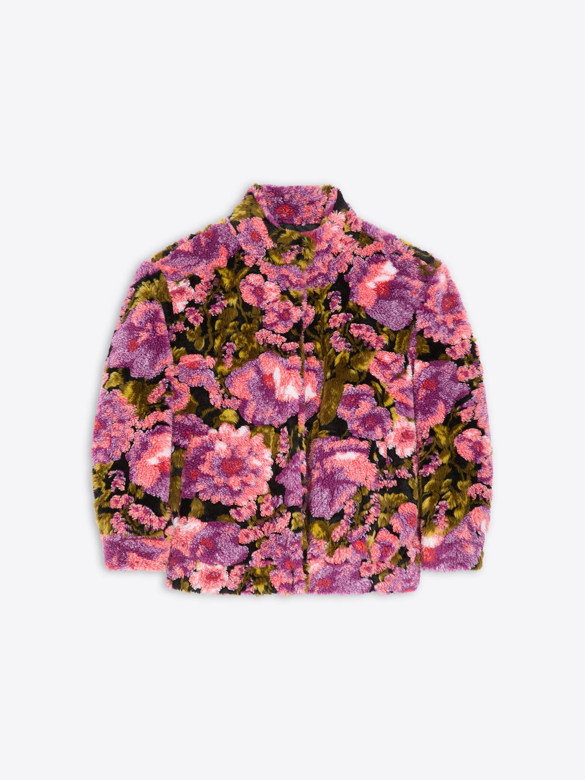 Oversized fit buttoned jacket in high and low pile floral shearling jacquard. DETAILS - 56% Polyethylene Terephthalate, 27% Modacrylic, 17% Acetate. Lining: 42% Viscose, 34% Polyester, 22% Cotton, 2% Polyamide. - High and low pile floral shearling jacquard. - Loose fit. Long sleeves. Stand collar. Side slit pockets. Hidden front closure. - Ref: 252-110545-2100 SIZE AND FIT Model is 178 cm / 70 inches and wears size M.
