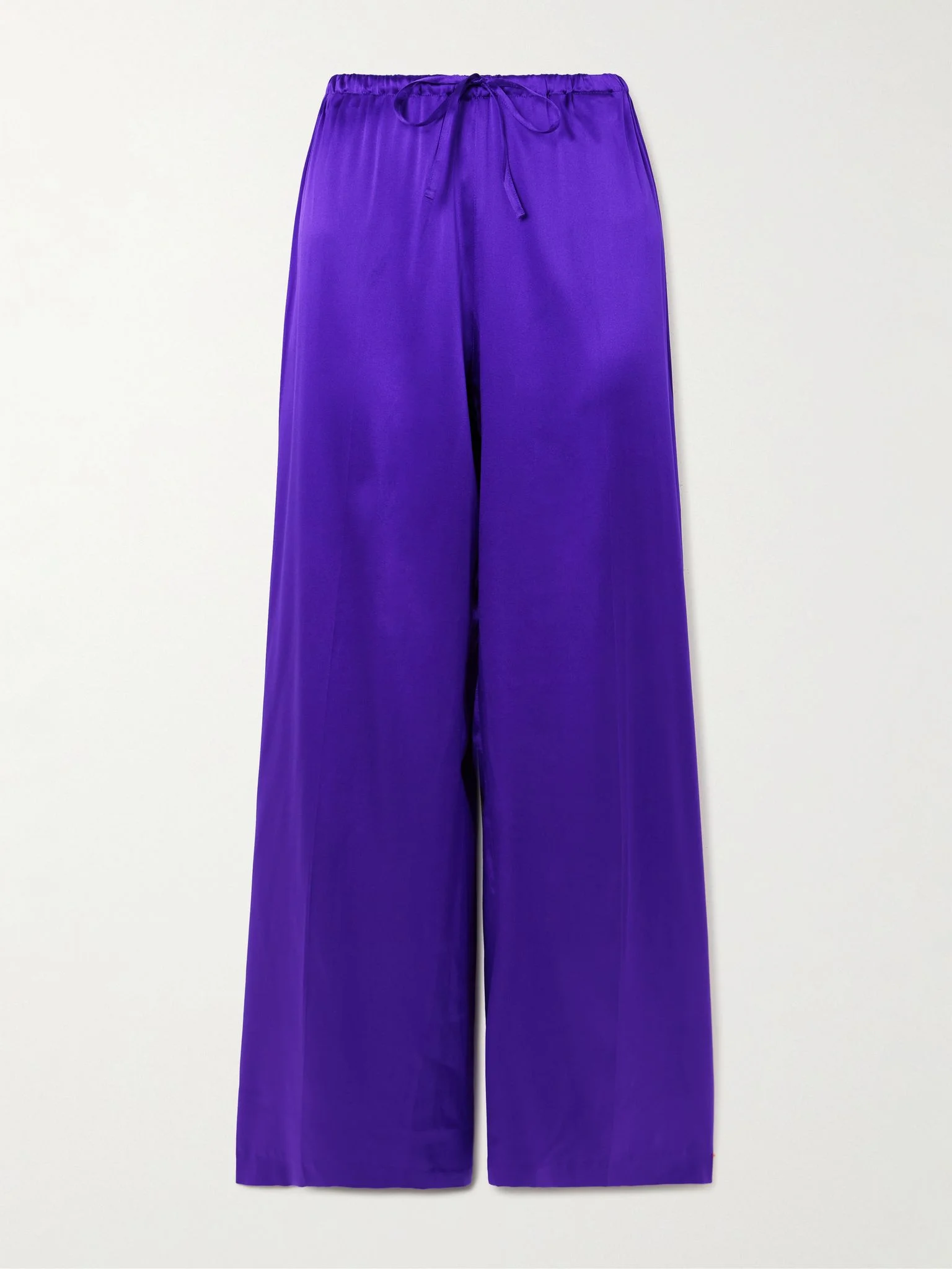 Dries Van Noten's electric-purple pants will enliven any outfit. Made from silk-blend satin, they feel smooth, light and beautifully flowy. Wear them with heeled boots. Size & Fit - Fits true to size, take your normal size - Mid-rise, cut for a straight-leg fit - Elasticated at the waist for a flexible fit - Lightweight, fluid, non-stretchy fabric - Model is 175cm/ 5'9" and is wearing a FR 36 Model measurements: - Bust: 81cm/ 32" - Waist: 62cm/ 24.5" - Hip: 89cm/ 35" Details & Care - Purple silk-blend satin - Pull on - 94% silk, 6% elastane - Unlined - Dry clean