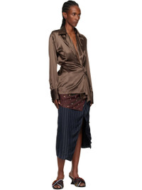 Stretch silk satin shirt. · Draping throughout · Open spread collar · Offset button fastening at front · Asymmetrical hem · Dropped shoulders · Surgeon's cuffs · Darts at back Supplier color: Brown 94% silk, 6% elastane. Made in Poland 252358F109031