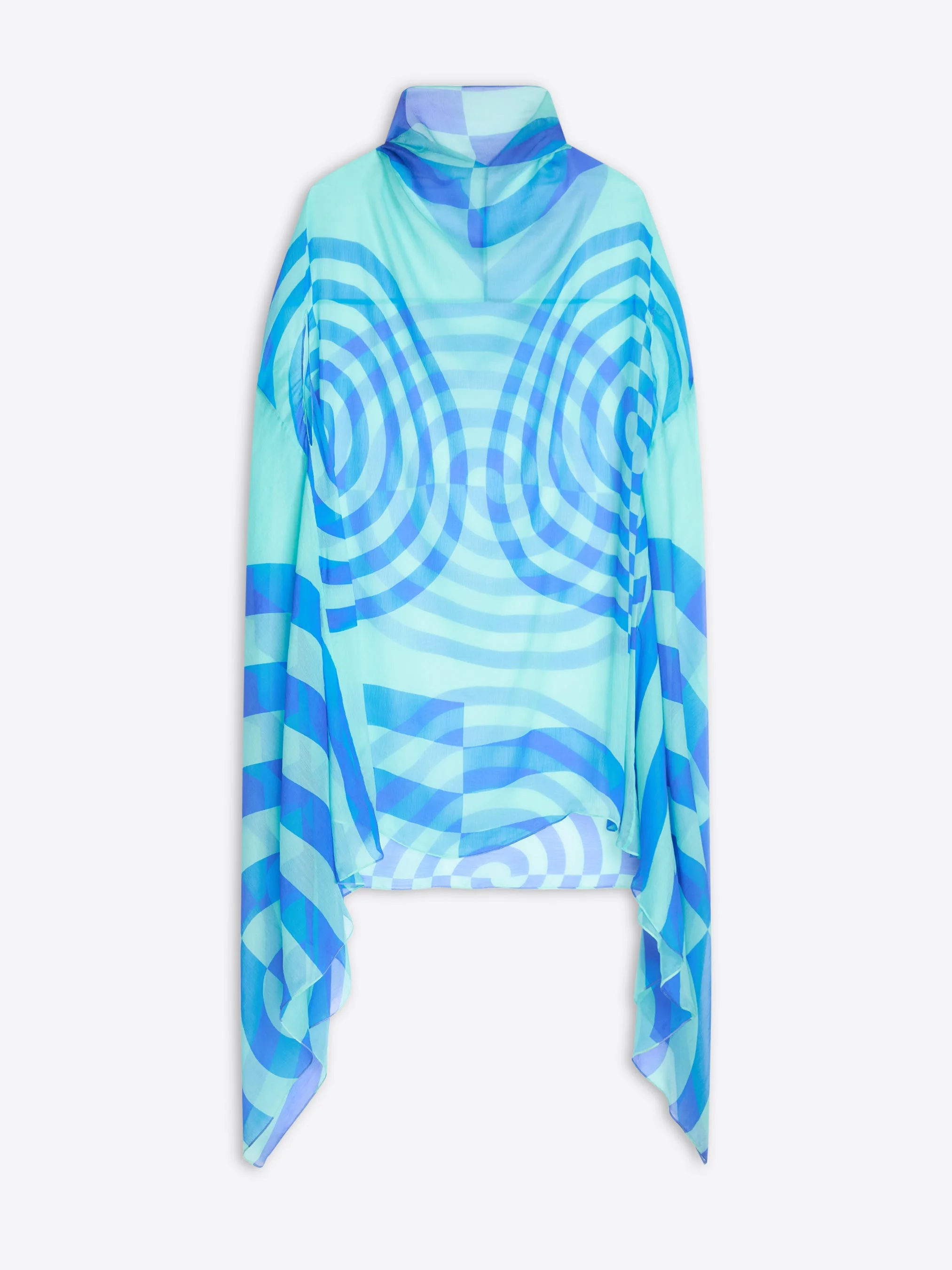 Loose fit cape dress in sheer silk, with high neckline and geometric print. DETAILS - 100% Silk. - Geometric print. - Loose fit. High neckline. Slip-on. - Ref: 261-011082-3093 SIZE AND FIT Model is 178 cm / 70 inches and wears size S.