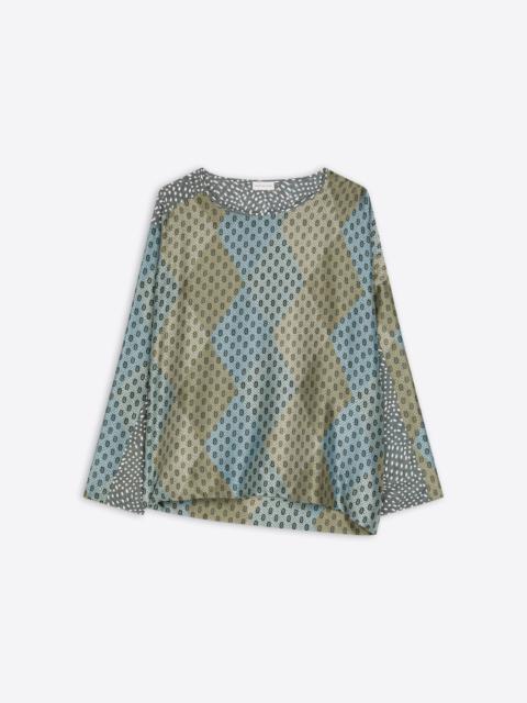 Loose fit asymmetrical top in silk habotai, with contrast panels, Tie print and Argyle pattern. DETAILS - 57% Silk, 43% Viscose. - Contrast panels. Tie print with Argyle pattern. - Loose fit. Asymmetrical. Long sleeves. Round neckline. - Ref: 252-010722-2127 SIZE AND FIT Model is 178 cm / 70 inches and wears size 38.