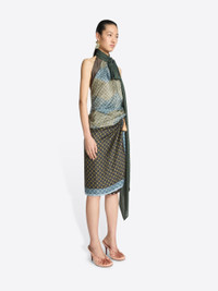 Regular fit draped halterneck top in silk, with scarf collar and Tie print with Argyle pattern. DETAILS - 98% Silk, 2% Elastane. - Tie print with Argyle pattern. - Regular fit. Halterneck. Scarf collar. Front and back fabric-covered button closure. - Ref: 252-010791-2108 SIZE AND FIT Model is 178 cm / 70 inches and wears size 34.