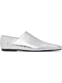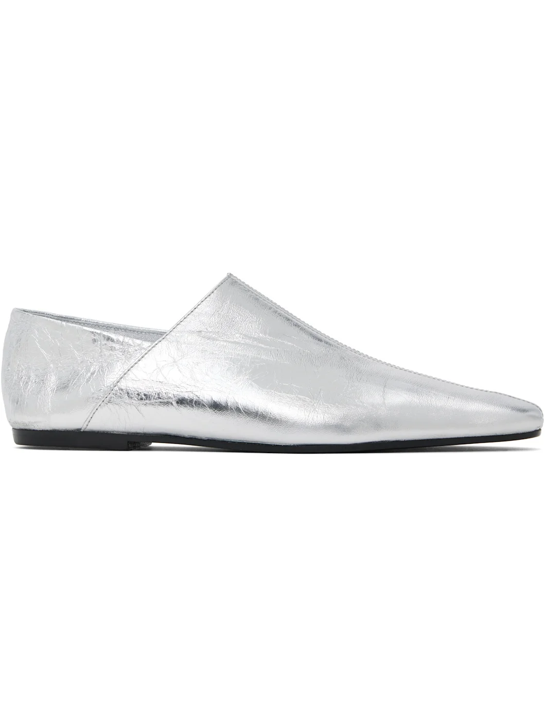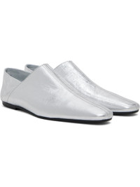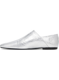 Crinkled lambskin loafers in silver tone. · Almond toe · Collapsible heel counter · Leather heel and sole with rubber injection Supplier color: Silver Upper: lambskin. Sole: leather, rubber. Made in Italy 251358F121005