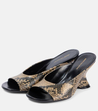 Snake-effect leather mules