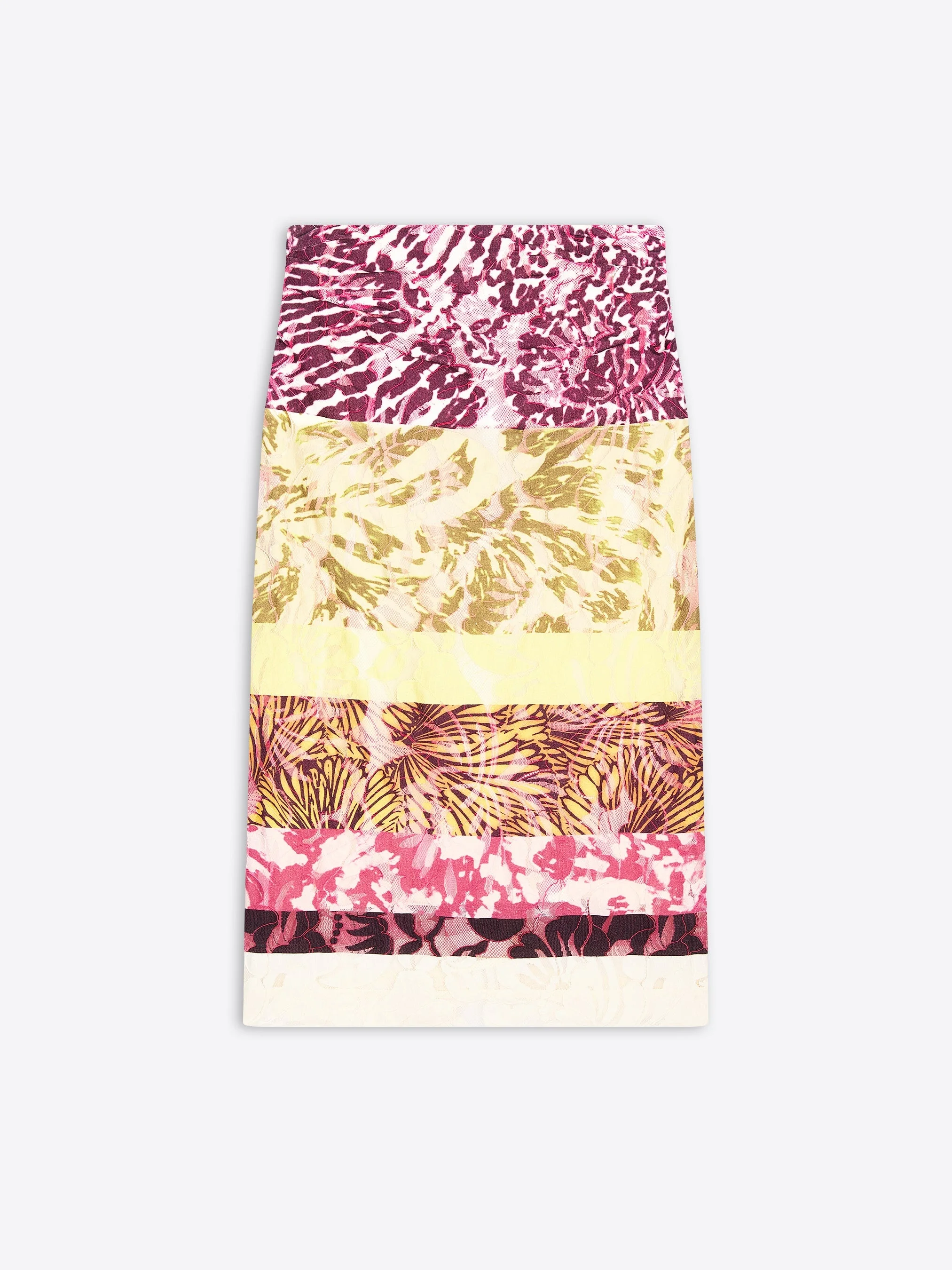 Fitted knee-length skirt in cotton nylon blend, with Floral Composition print. DETAILS - 48% Cotton, 47% Nylon, 5% Elastane. Lining: 100% Viscose. - Floral Composition print. - Regular fit. Knee length. Gathered waist. Back zip closure. - Ref: 251-070847-1043 SIZE AND FIT Model is 176 cm / 69 inches and wears size 34.