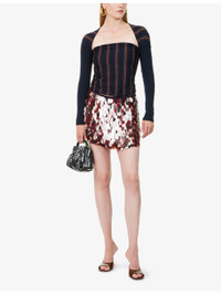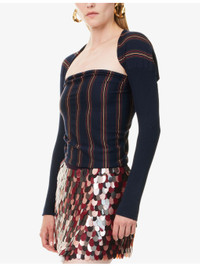 PRODUCT DETAILS - Dries Van Noten wool top - 100% merino wool - Cropped, long sleeves, all-over striped print, all-over fine-knit pattern, ribbed trims - Hand wash cold - True to size - Model is 5ft 10in / 1.78m and wears one size - Lightweight, stretchy Ref: R04510418