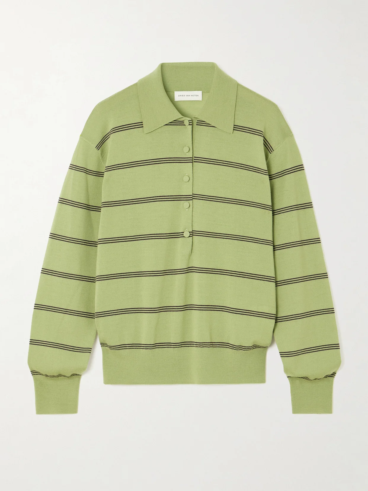 Dries Van Noten's polo shirt will make a great addition to your everyday uniform. Made from merino wool, it's patterned with contrasting stripes and has a relaxed shape with dropped shoulder seams. The covered buttons create a clean-lined finish.