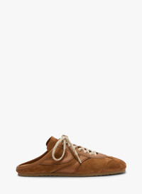 Backless slip-on suede sneakers, inspired by 70s marathon spirit, with nappa upper and thin signature sole. DETAILS - Upper: 80% Calf Leather, 20% Cow Leather. Insole: 100% Calf Leather. Sole: 100% Rubber. - Round toes. Lace-up. - Comes with dust bag. - Made in Italy. - Ref: 261-011778-0126