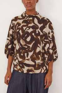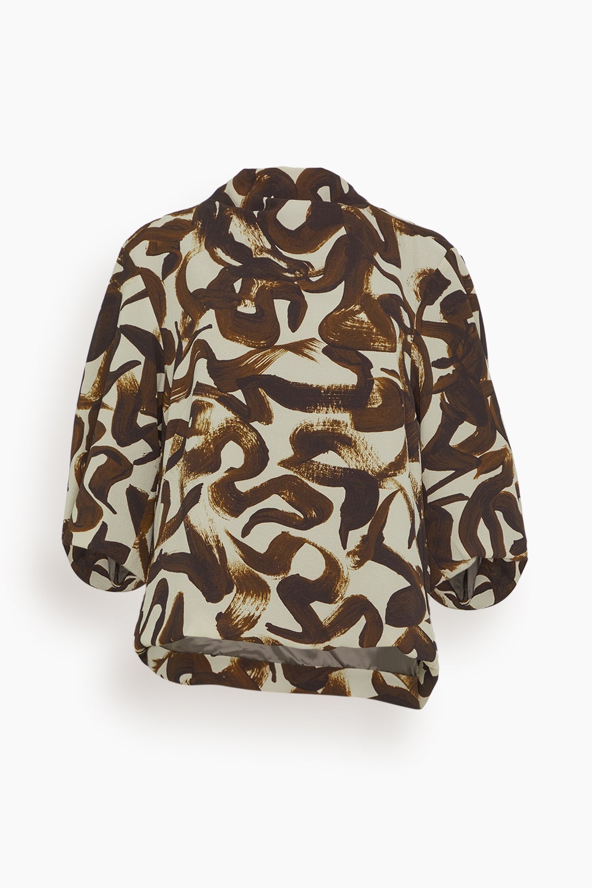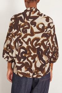 The Dries Van Noten Clari Printed Shirt is crafted in their signature abstract print. You'll love the roomy silhouette of this crepe blouse with an artistic flare. Wear yours with trousers and loafers. FIT DESCRIPTION MODEL MEASUREMENTS - Fits true to size, take your normal size - Blouse - Boxy silhouette - High neckline - Crepe material - Kyndal is wearing a size XS - Bust: 32" - Waist: 24" - Hips: 35“ - Height: 5’6”