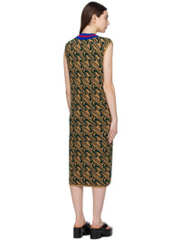 Knit viscose- and merino wool-blend dress. Jacquard graphic pattern throughout. · Striped rib knit V-neck · Rib knit hem and armsyces Supplier color: Cognac