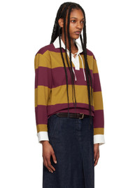 Cotton- and linen-blend jersey polo. Stripes throughout. · Spread collar · Lace-up placket · Vented side seams · Adjustable single-button barrel cuffs Supplier color: Mustard 92% cotton, 6% linen, 2% viscose. Made in Bulgaria 241358F108006