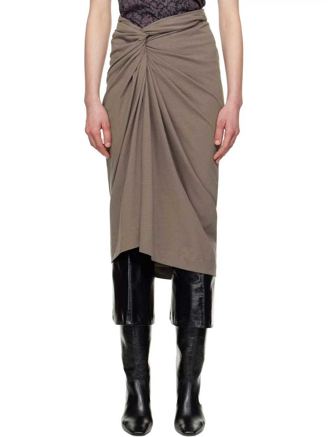 Taupe Knotted Jersey Midi Skirt