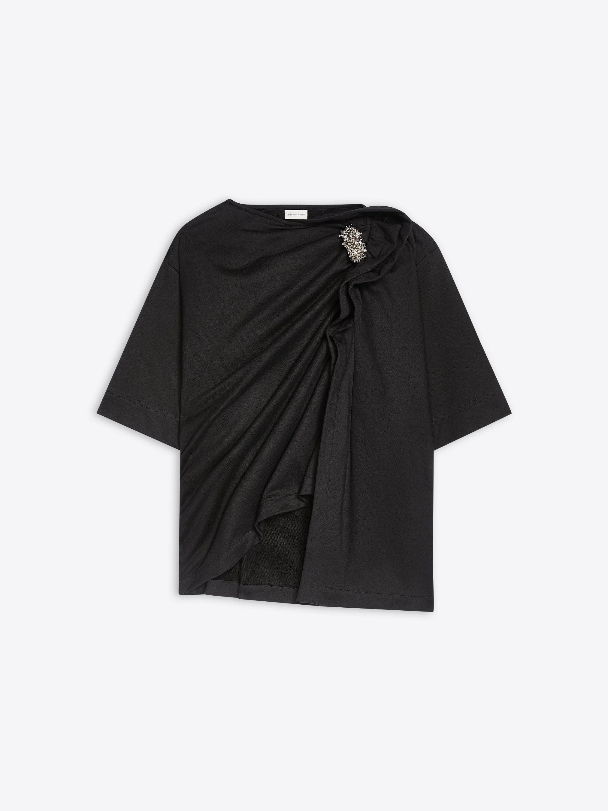 Oversized short-sleeved T-shirt in cotton, with draping and brooch embellishment. DETAILS - 100% Cotton. - Brooch embellishment. - Oversized fit. Short sleeves. Crew neck. - Ref: 252-011135-2611 SIZE AND FIT Model is 178 cm / 70 inches and wears size M.