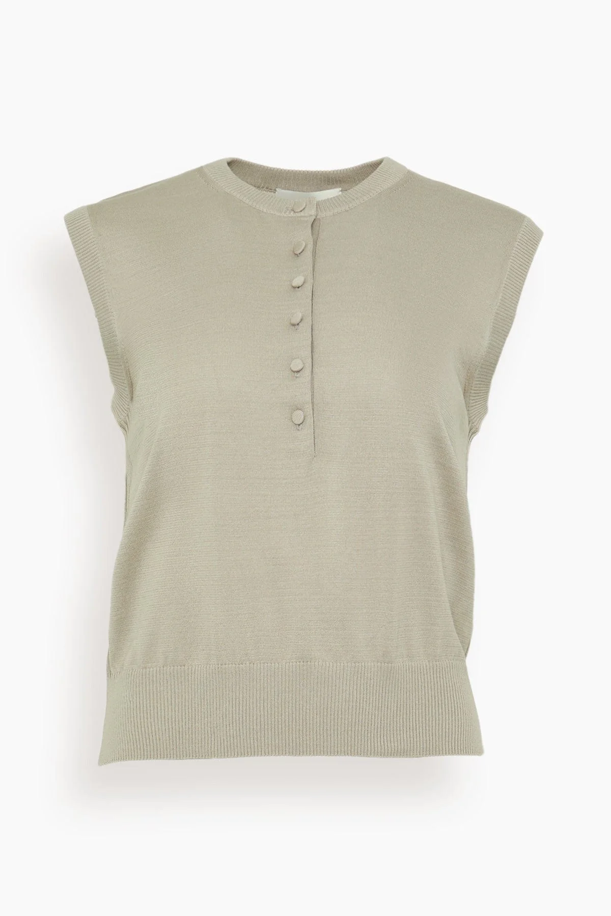 The Dries Van Noten Togo Top is a timeless addition to your wardrobe. This sleeveless knit top features a straight silhouette with a half button front. Wear yours with trousers and sandals. FIT DESCRIPTION MODEL MEASUREMENTS - Fits true to size, take your normal size - Sleeveless knit top - Straight silhouette - Ribbed trim - Half button front - 100% Cotton - Charley is wearing a size XS - Bust: 33” - Waist: 25” - Hips: 34” - Height: 5’8”