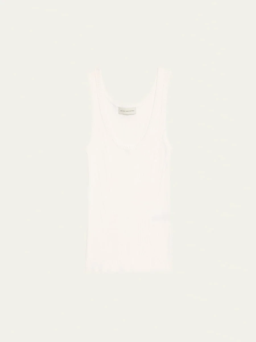 Dries Van Noten "Topaz" top, featuring an allover ribbed texture for a refined formfitting silhouette Scoop neckline Sleeveless Pullover style Cotton Imported