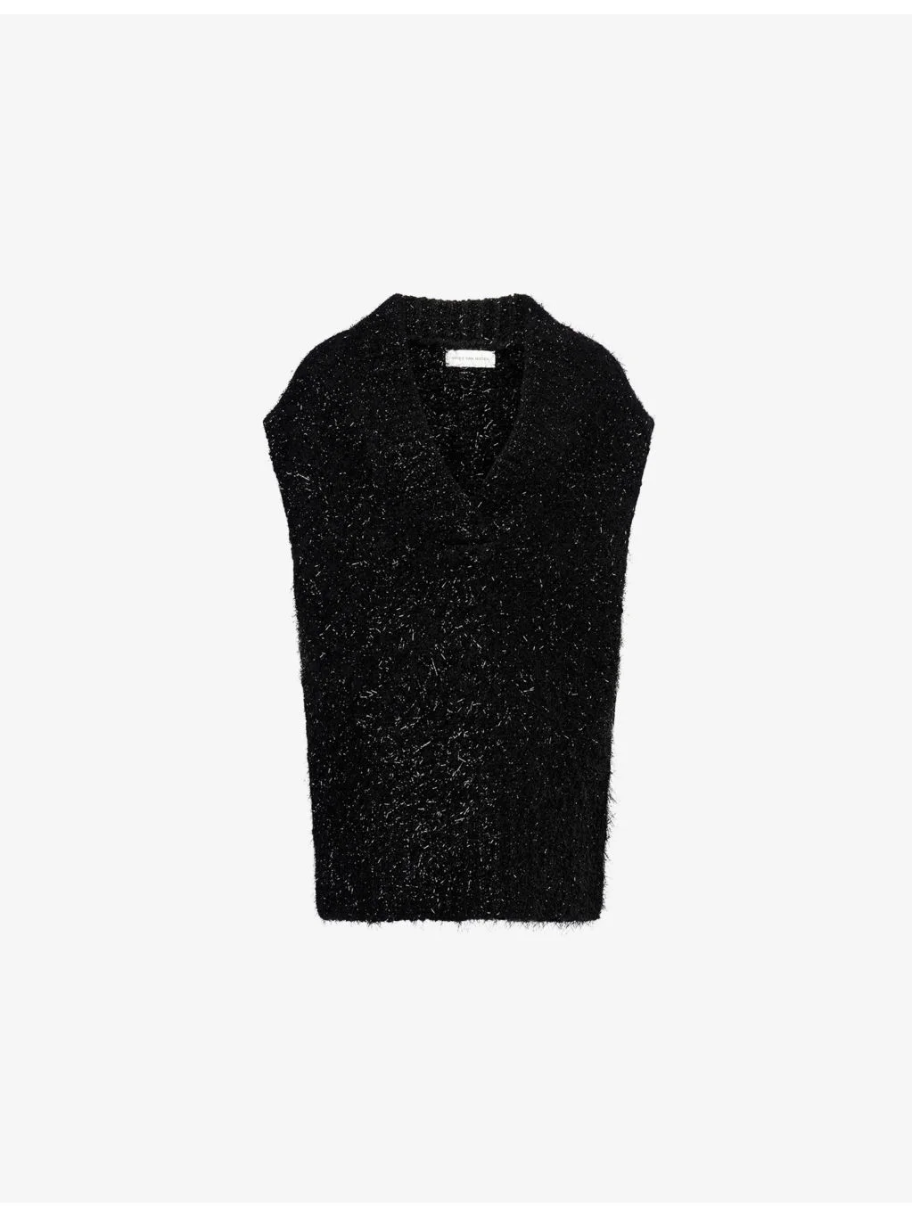 PRODUCT DETAILS - Dries Van Noten wool-blend knitted jumper - 78% wool, 20% polyester, 2% nylon - Relaxed fit, V-neckline, sleeveless, metallic knit, ribbed trims - Hand wash - Made in Belgium - True to size - Model is 5ft 10in/1.78m and wears a size small - Midweight, stretchy Ref: R04553118
