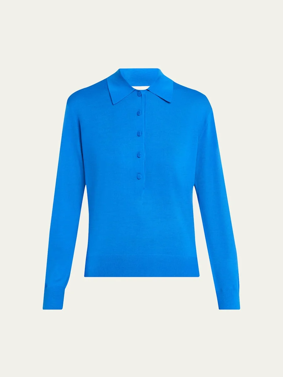 Dries Van Noten's "Tuno" polo sweater is knit from luxurious merino wool and finished with selfcovered buttons Spread collar; fivebutton placket Long sleeves Slim fit Hip length Pullover style Merino wool Imported