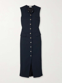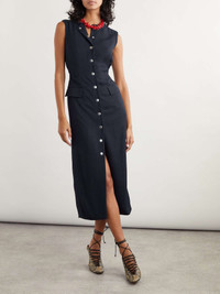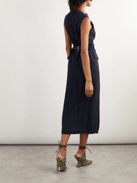 EDITORS'NOTES Dries Van Noten's dress is so chic. Made from navy twill, it's cut for a figure-hugging fit and has strategically placed darting and flap pockets to highlight your curves. Undo a few of the silver-tone snap fastenings at the crew neck or split hem to show a bit more skin. SIZE & FIT Model measurements: - Fits true to size, take your normal size - Designed for a slim fit - Mid-weight, non-stretchy fabric - Model is 180cm/ 5'11" and is wearing an EU 36 - Bust: 82cm/ 32” - Waist: 65cm/ 26” - Hip: 93cm/ 37” DETAILS & CARE - Navy twill - Snap fastenings through front - 100% acetate - Dry clean