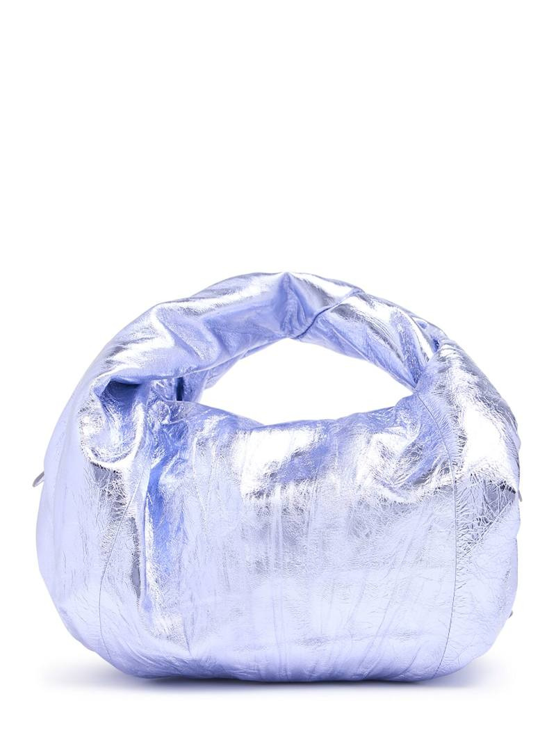 Twist metallic leather top handle bag