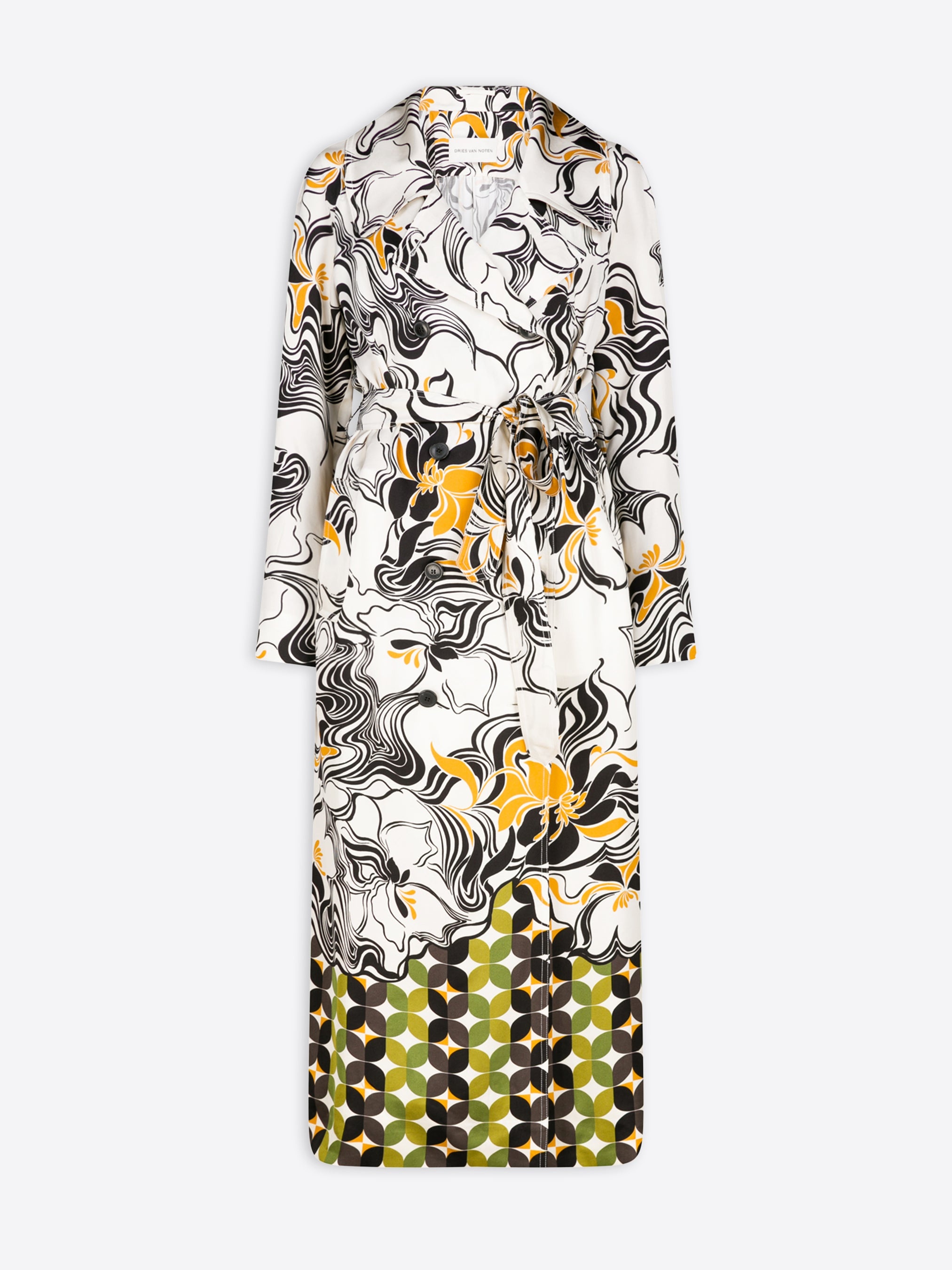 Fitted unconstructed coat with belt, in printed viscose. DETAILS - 100% Viscose. - Contrast abstract and geometrical prints. - Regular fit. Front slit pockets. Comes with belt. Front button closure. - Ref: 241-070248-8406 SIZE AND FIT Model is 179 cm / 70 inches and wears size 36.