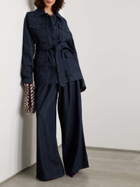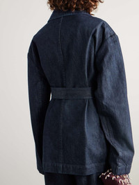 EDITORS'NOTES Dries Van Noten's jacket takes cues from classic safari styles. Made from denim, it's fitted with an array of flap pockets and has a self-tie belt to define your waist. Wear it with jeans in a similar wash. SIZE & FIT Model measurements: - Fits true to size, take your normal size - Designed for a loose fit, use the tie belt to cinch in at the waist - Dropped shoulder seam - Mid-weight, non-stretchy denim - Model is 180cm/ 5'11" and is wearing a size Small - Bust: 81cm/ 32" - Waist: 63cm/ 25" - Hip: 91cm/ 36" DETAILS & CARE - Dark-blue denim - Button fastenings through front - 100% cotton - Machine wash