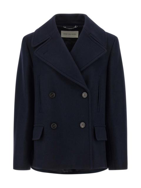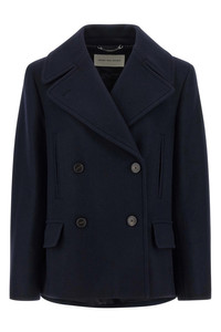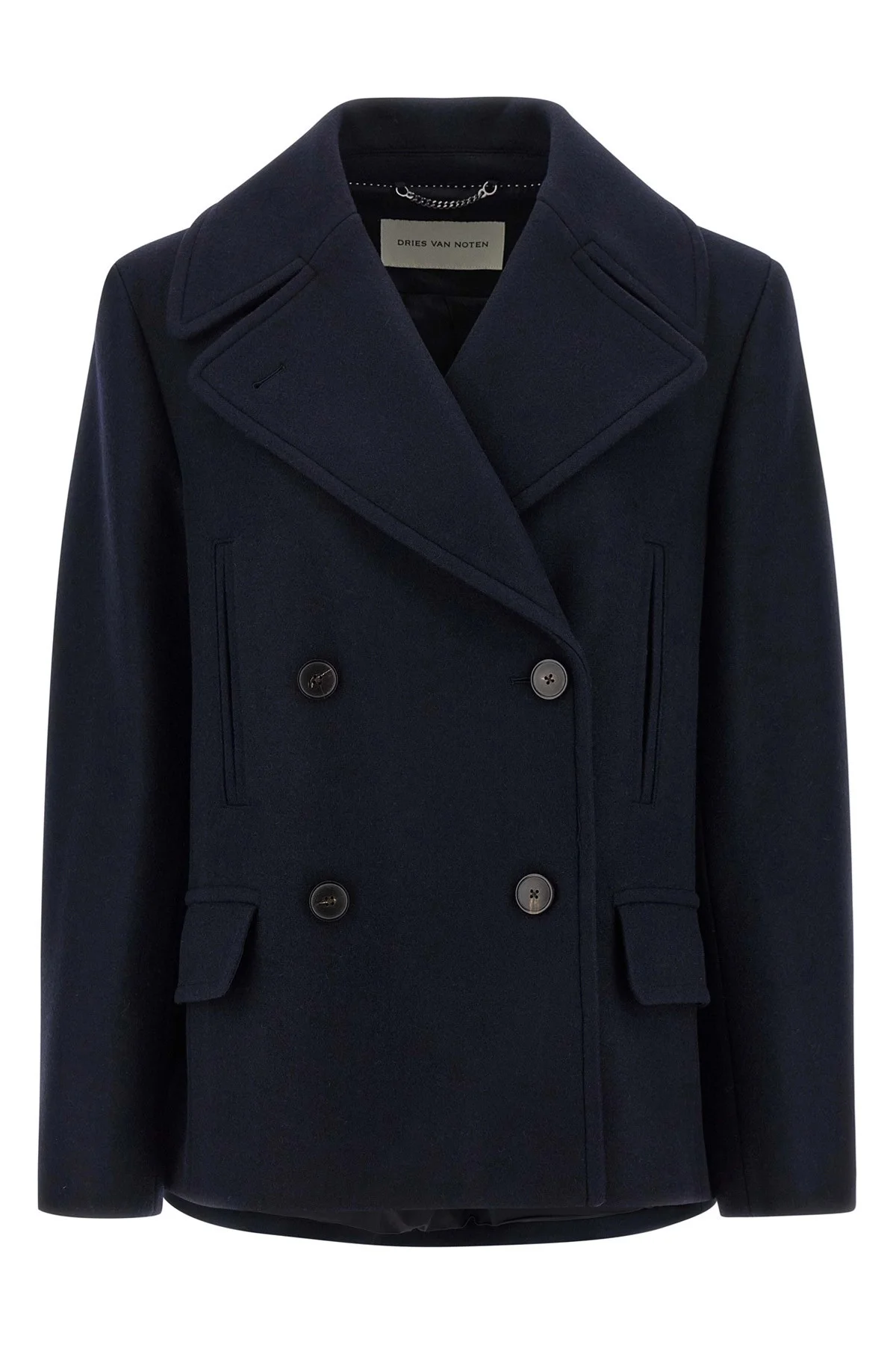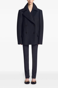 cod. 2520105402216509 'Vafel' wool blend coat, viscose and cotton blend lining, double-breasted style with front button closure, mirror lapels, pockets, long sleeves with dropped shoulders, padded shoulder, ruffle with back ruffles, asymmetrical hem. Color: Blue Size & Fit: oversized fit Composition: 70% wool, 30% polyamide Made in: Romania