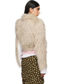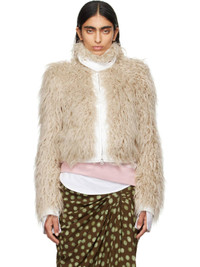 Slim-fit faux-fur and non-stretch denim jacket. · Paneled construction · Spread collar · Detachable throat guard for alternate styling · Two-way zip closure · Welt pockets · Cropped hem · Padded shoulders · Welt pocket at interior · Full cotton-blend sateen lining · Contrast stitching in brown Supplier color: Beige