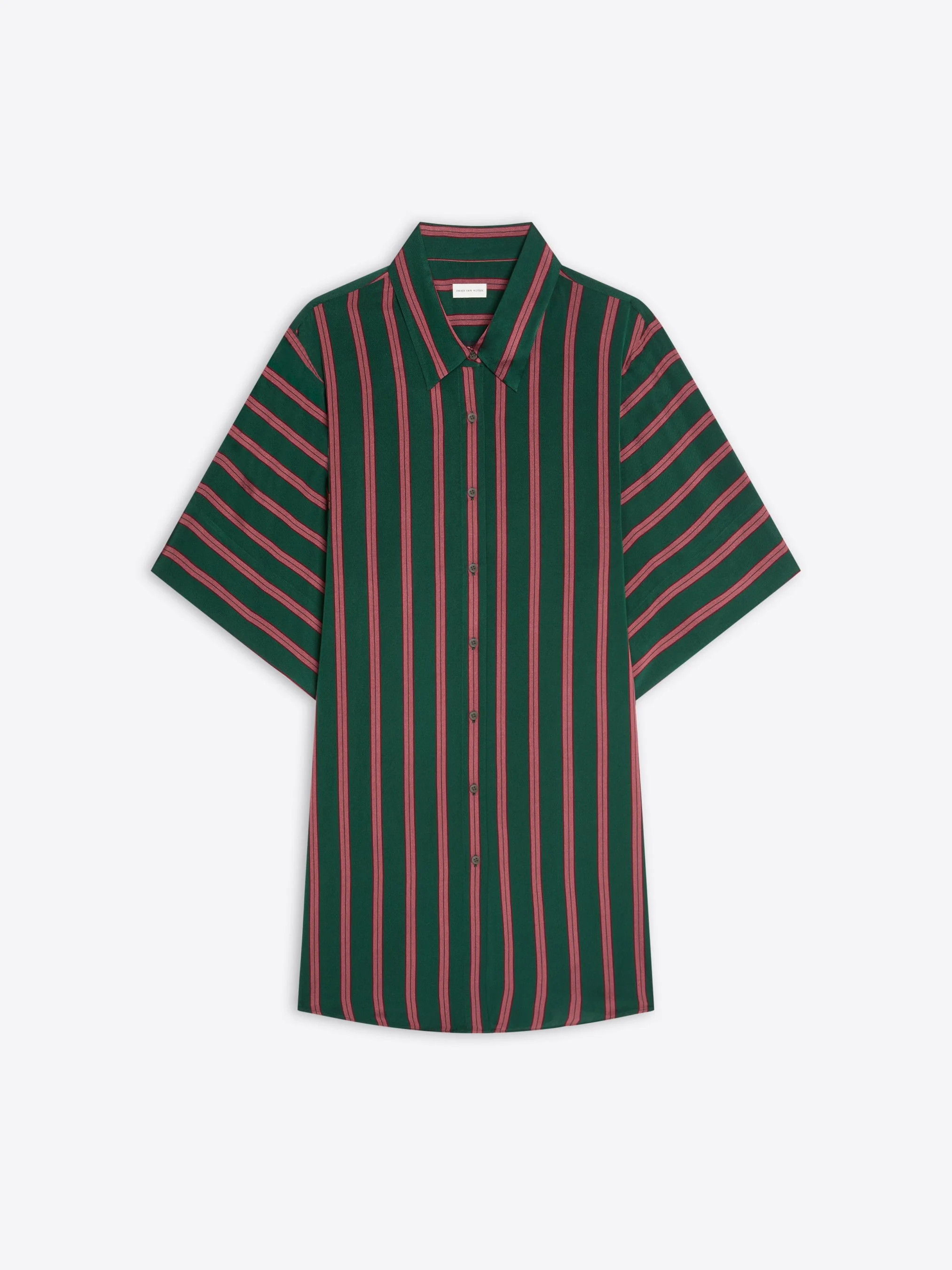 Loose fit short-sleeved shirt dress in viscose silk, with striped pattern. DETAILS - 88% Viscose, 12% Silk. - Loose fit. Thigh length. Classic collar. Front button closure. - Ref: 261-011024-3017 SIZE AND FIT Model is 178 cm / 70 inches and wears size 36.