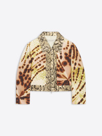 Regular fit cropped jacket in cotton viscose blend, with hot fix embroidery, Orchid Petals all-over print and jacquard snakeskin piping. DETAILS - 80% Cotton, 20% Viscose. Lining: 100% Viscose. - Hot fix embroidery. Orchid Petals all-over print. Jacquard snakeskin piping. - Regular fit. Cropped. Front two-way zip closure. - Ref: 251-010519-1534 SIZE AND FIT Model is 178 cm / 70 inches and wears size 36.