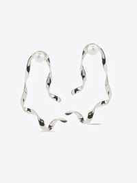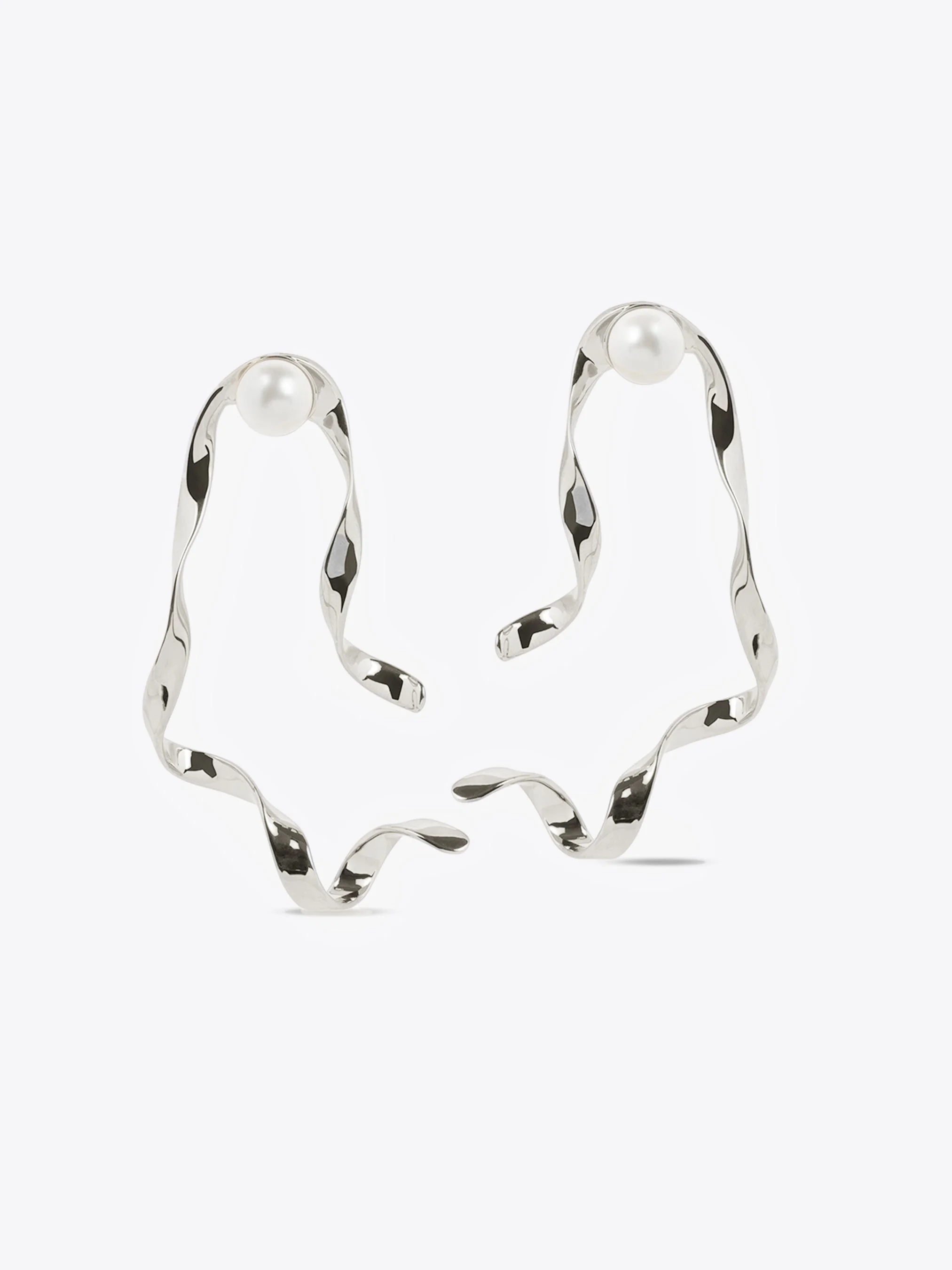 Handmade wave stud earrings in brass, with strass embellishment. DETAILS - 90% Brass, 10% Shell Paste Pearls. - Handmade. - Pin fastening. - Ref: 242-018205-096