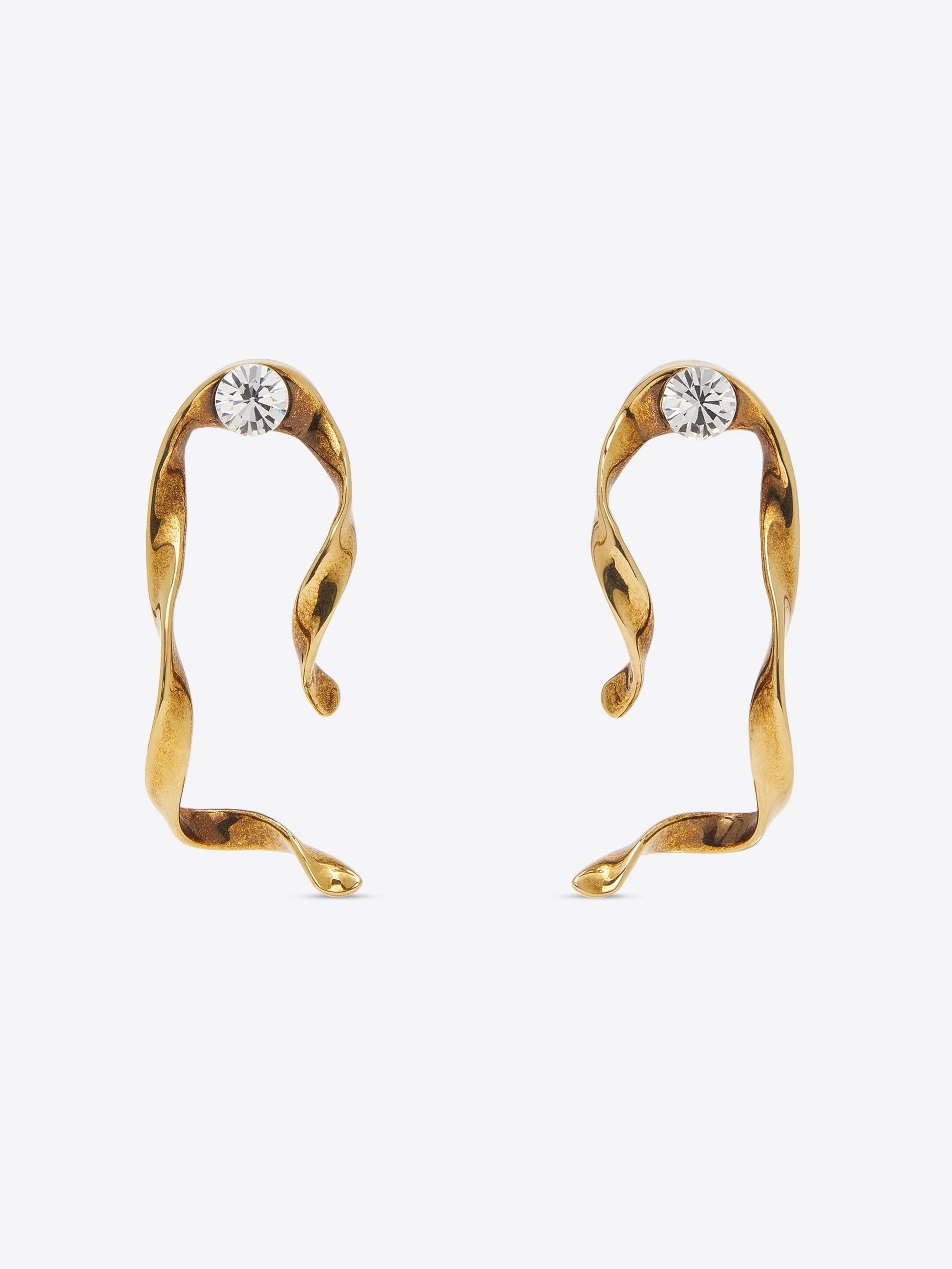 Handmade wave stud earrings in brass, with strass. DETAILS - 90% Brass, 10% Strass. - Pin fastening. - Ref: 241-018218-063
