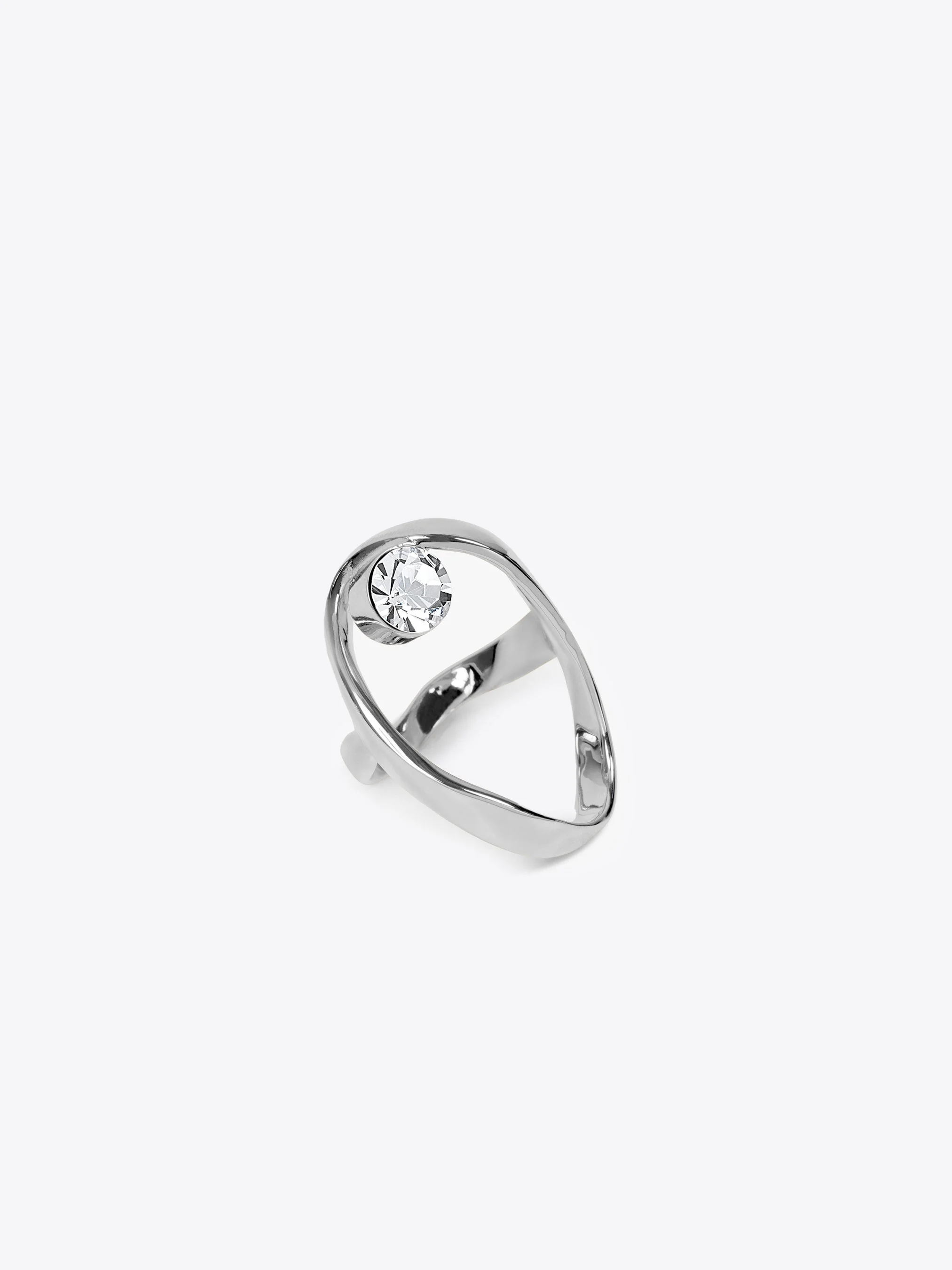Handmade brass ring with waved wire and jewel. DETAILS - 80% Brass, 20% Strass. - Handmade. - Ref: 242-018212-063 SIZE AND FIT S: 52 / 16.5 mm / 0.65 in diameter M: 55 / 17.5 mm / 0.67 in diameter L: 58 / 18.4 mm / 0.72 in diameter