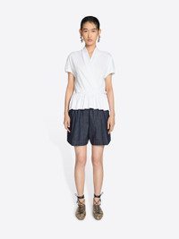 Wide pleated shorts with elasticated waistband, in lightweight rinsed indigo denim. DETAILS - 100% Lightweight Cotton. - Loose fit. Mid rise. Wide pleated leg. Side slit pockets and back patch pocket. Elasticated waistband. - Ref: 251-010937-1553 SIZE AND FIT Model is 177 cm / 70 inches and wears size S.