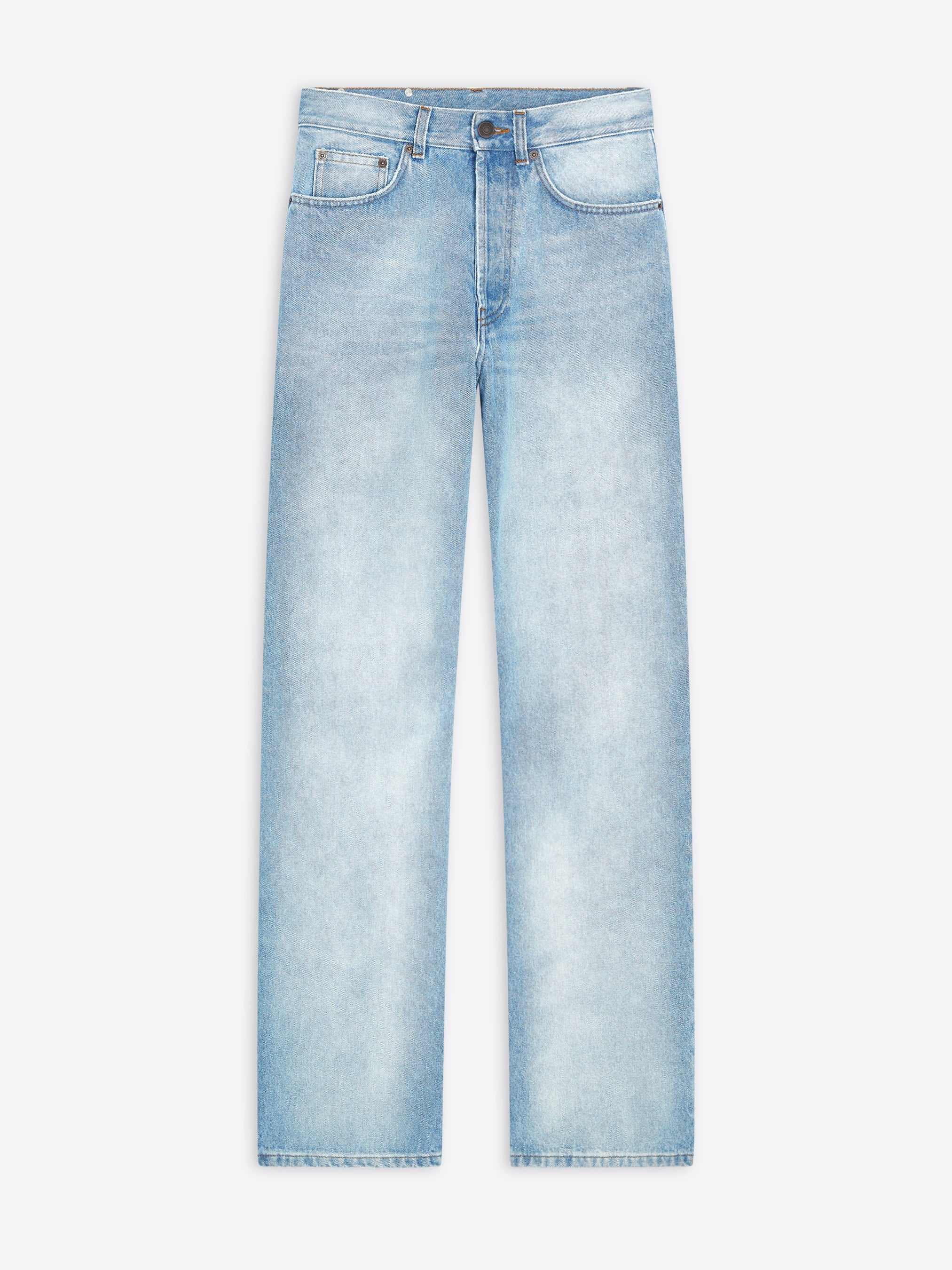 Regular fit wide leg five-pocket pants, in denim. DETAILS - 100% Cotton. - Regular fit. Mid rise. Wide leg. Five pockets. Front button closure. - Ref: 242-010929-9391 SIZE AND FIT SAMPLE SIZE: 28