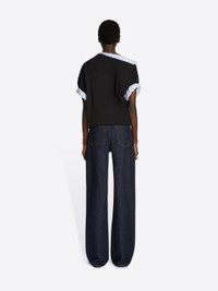 Regular fit wide leg five-pocket pants, in denim. DETAILS - 100% Cotton. - Regular fit. Mid rise. Wide leg. Five pockets. Front button closure. - Ref: 241-010928-8429 SIZE AND FIT Model is 178 cm / 70 inches and wears size 27.