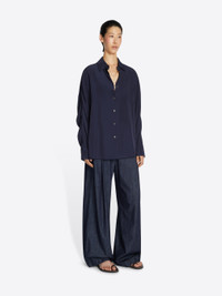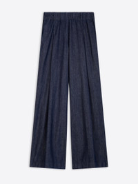 Wide leg elasticated pants with pleats, in lightweight denim. DETAILS - 100% Cotton. - Loose fit. High rise. Wide pleated leg. Side slit pockets and back patch pocket. Elasticated waistband. - Ref: 252-010936-2382 SIZE AND FIT Model is 178 cm / 70 inches and wears size S.