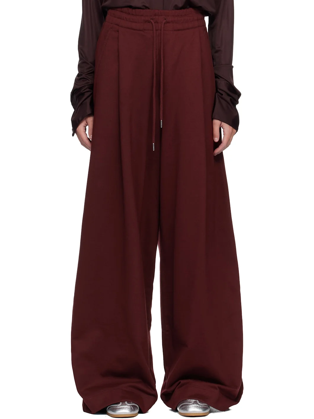 French terry sweatpants. · Loose-fit and wide-leg · Mid-rise · Drawstring at elasticized waistband · Three-pocket styling · Mock fly · Pleats at front Supplier color: Ruby 100% cotton. Made in Turkey 252358F086002