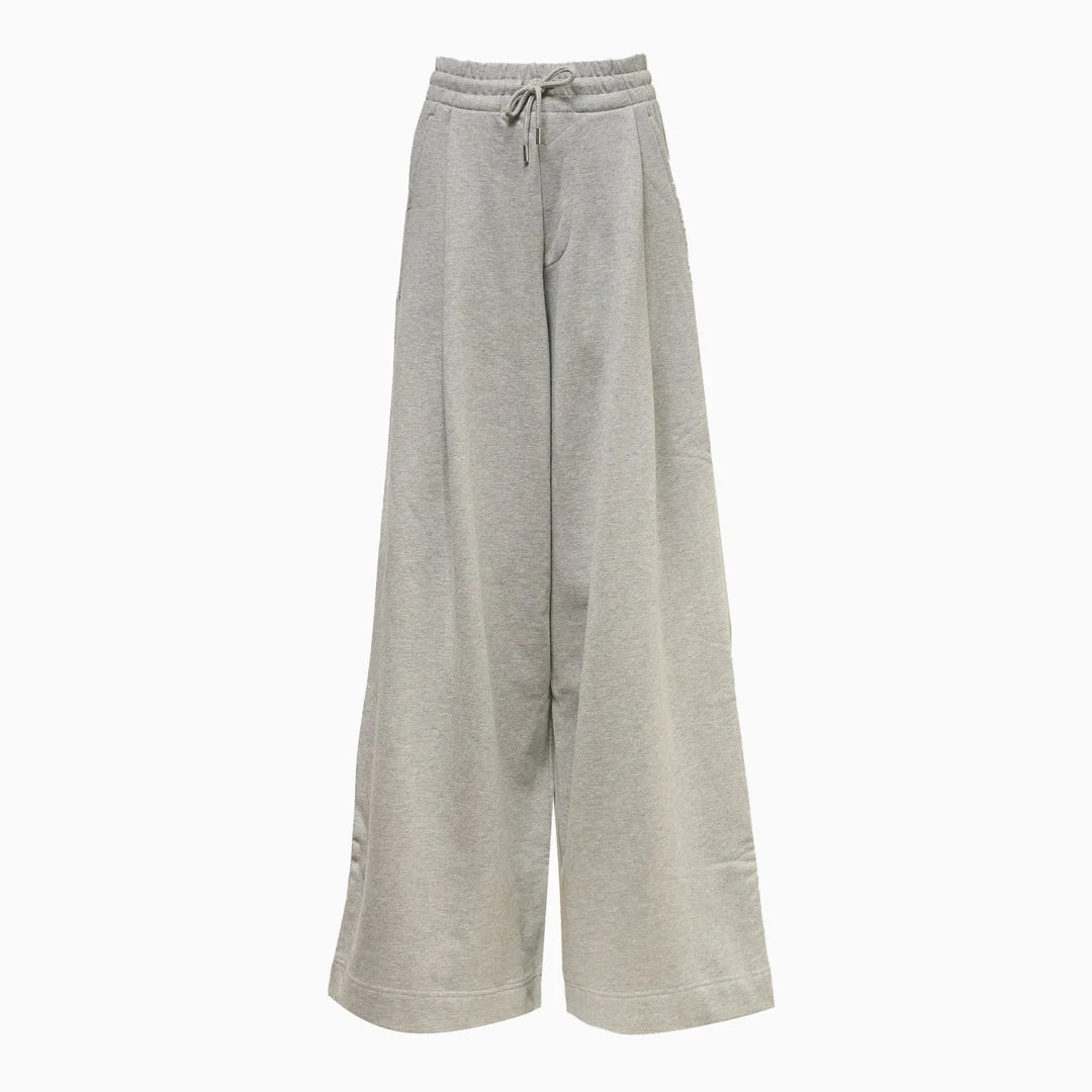 600078598GRY0XS / HADIUM/3611/813 - Elasticated waistband with drawstring closure - Side seam pockets - Wide-leg silhouette - Compact cotton jersey construction - Relaxed fit through hips and thighs - Hemmed cuffs Dries Van Noten Wide Leg Sweatpants deliver contemporary luxury comfort with architectural silhouette and premium construction. Crafted from compact cotton jersey in soft heather gray, featuring an oversized wide-leg cut that redefines modern loungewear. The sophisticated proportions and minimalist Belgian design create an elevated casual essential for discerning wardrobes.