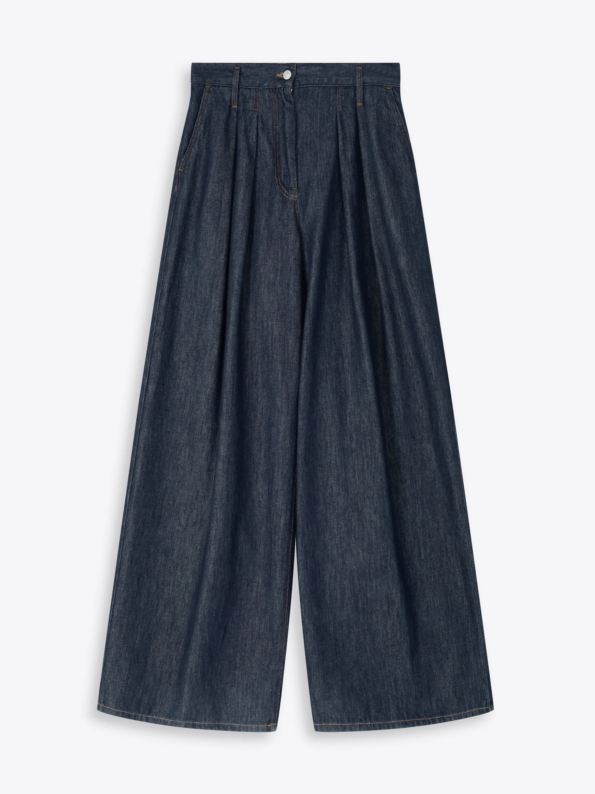 Wide pleated pants in midweight rinsed indigo denim. DETAILS - 100% Cotton. - Regular fit. Low rise. Wide leg. Side slit pockets. Front button and zip closure. - Ref: 261-130929-3385 SIZE AND FIT Model is 178 cm / 70 inches and wears size S.