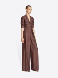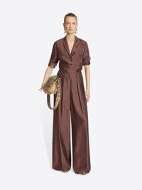 Wide pleated pants in diagonal stripe viscose acetate. DETAILS - 54% Viscose, 46% Acetate. - Diagonal stripe pattern. - Regular fit. Low rise. Pleated. Wide leg. Side slit pockets. Front button and zip closure. - Ref: 251-010903-1220 SIZE AND FIT Model is 179 cm / 70.5 inches and wears size 38.