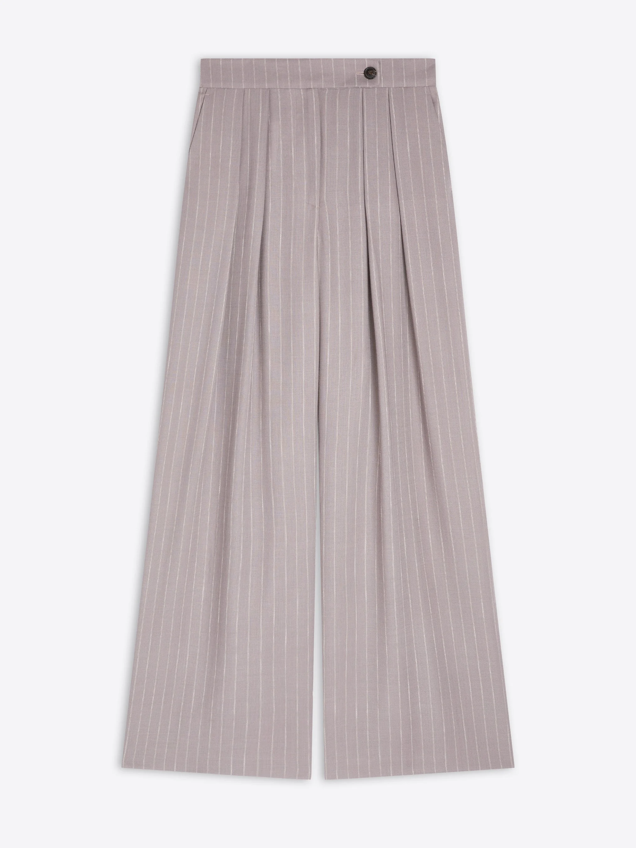 Wide pleated pants in wool crepe, with striped pattern. DETAILS - 99% Wool, 1% Cotton. - Regular fit. Low rise. Pleated. Wide leg. Side slit pockets. Front button and zip closure. - Ref: 261-010903-3306 SIZE AND FIT Model is 178 cm / 70 inches and wears size 38.