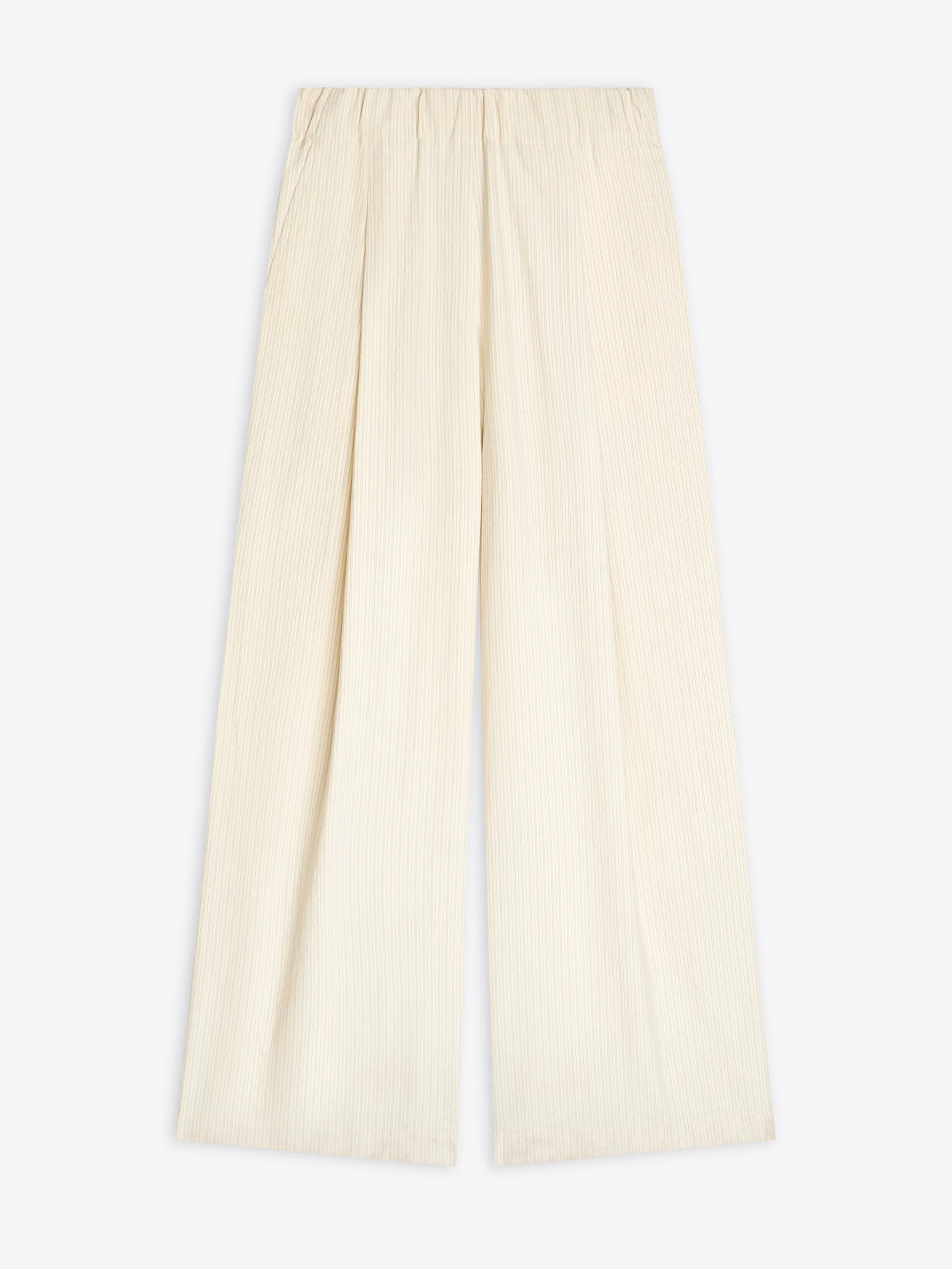 Wide leg elasticated pants in washed cotton and paper yarn fabric, with striped pattern. DETAILS - 74% Cotton. 26% Polyimide. Lining: 100% Cotton. - Loose fit. High rise. Wide pleated leg. Side slit pockets and back patch pocket. Elasticated waistband. - Ref: 261-010909-3360 SIZE AND FIT Model is 178 cm / 70 inches and wears size S.