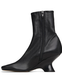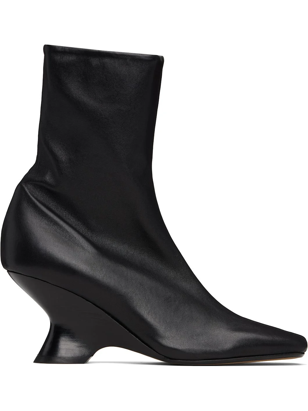 Ankle-high buffed lambskin boots. · Square toe · Central seam at vamp · Zip closure at inner side · Stacked leather wedge heel with rubber injection · Leather sole · Heel: H3" Supplier color: Black Upper: lambskin. Sole: leather, rubber. Made in Italy 252358F113001